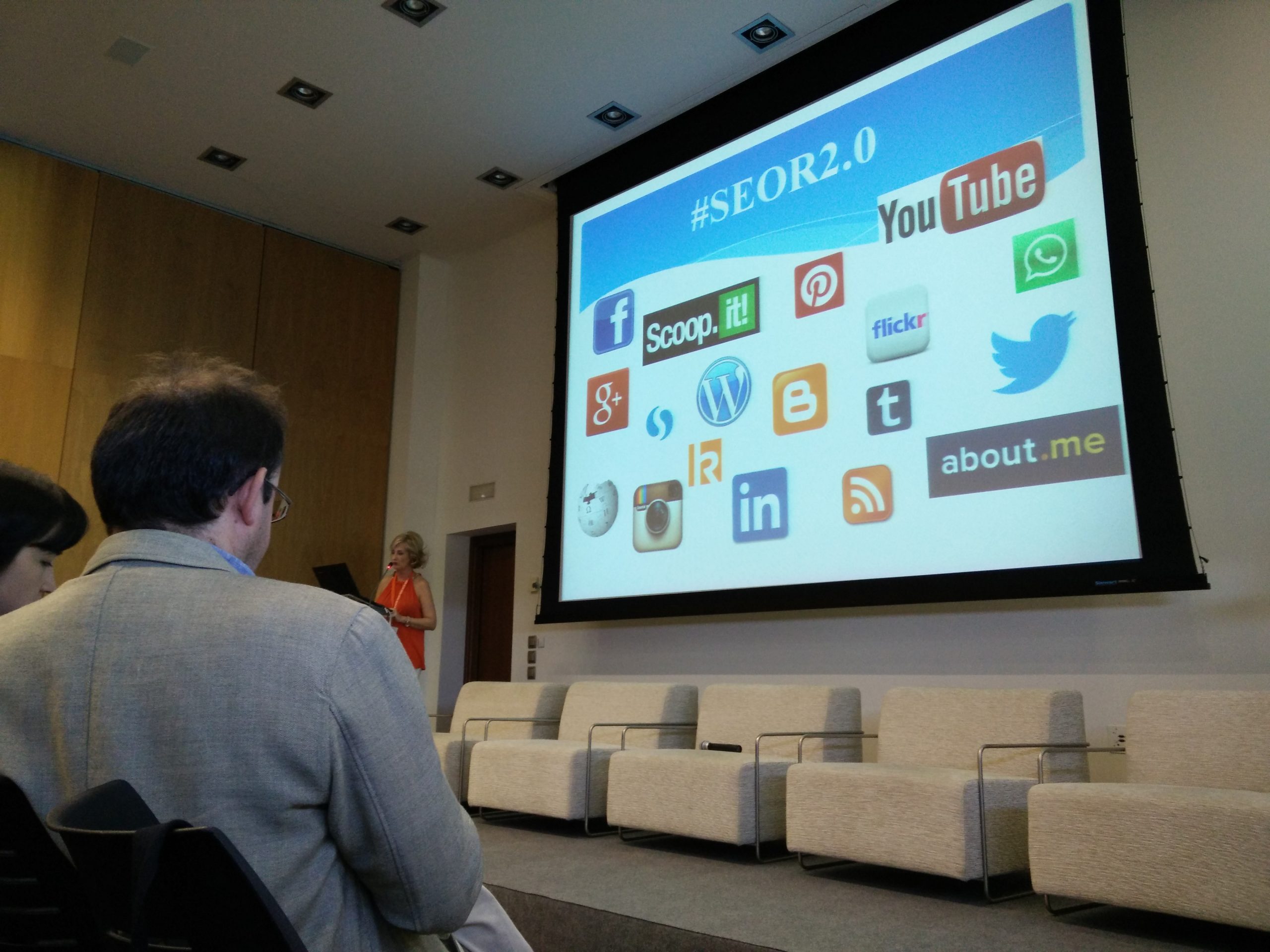 De izquierda a derecha los participantes en la mesa de redes sociales e internet #SEOR2.0: Naia Pereda (@naiapereda), David Muñoz (@davidmunozca), Amadeo Wals (@amadeowals), Virginia Ruiz (@roetgen66), Joseantonio Trujillo (@Joseatrujillo), Ángel Montero Luis (@Monthy_A), Joaquín Cabrera (@JoaquinJCabrera), Tere M. Migueláñez (@MsConcu) y Miguel Ángel Mañez (@manyez). Asuente de la foto pero participante en la mesa Nacho Rodríguez Melcón (@NachoRodMel)